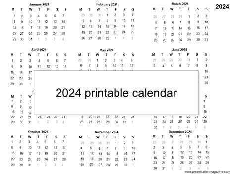 A simple PowerPoint template – a yearly calendar for 2024. You can print it out onto a single page to use as a calendar.